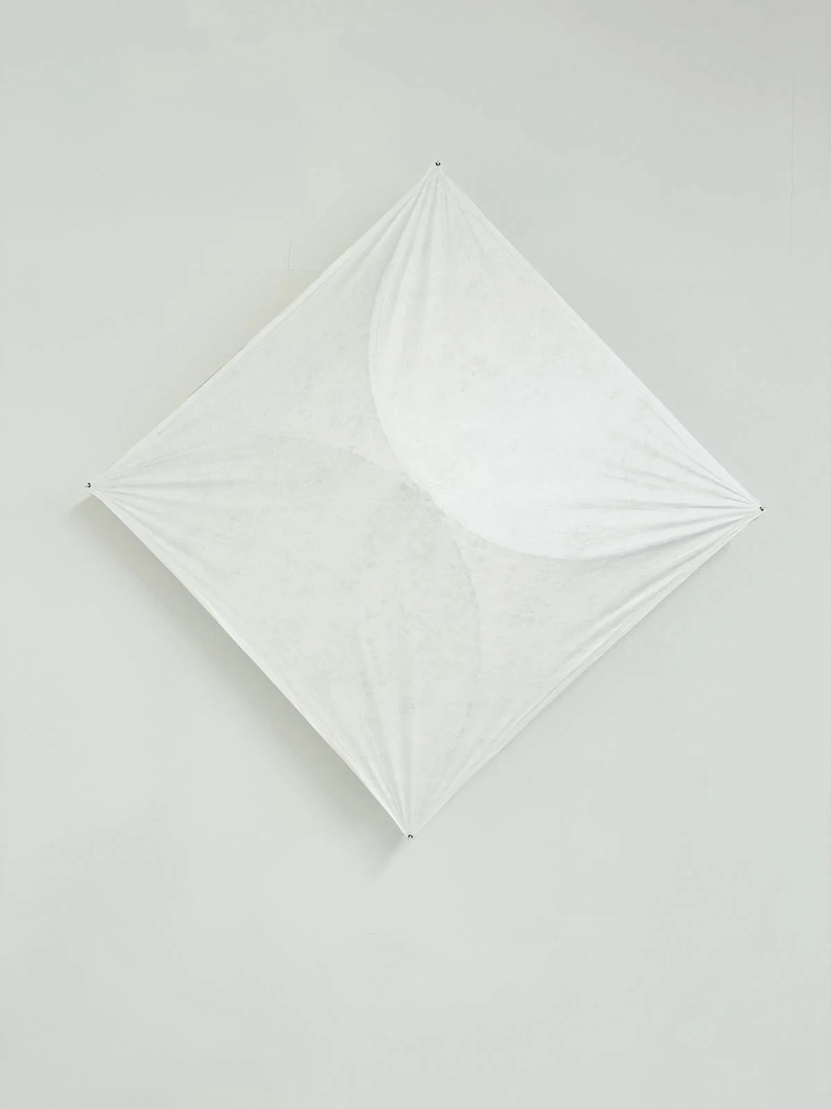 Entwurf aus 1973. Die Flos Ariette 2 kombiniert einen leichten, glasfaserverstärkten Polyamidrahmen mit einem halbtransparenten Gewebetuch, das das Licht sanft streut und wie ein schwebendes Segel wirkt. Insgesamt befindet sich das Objekt in einem guten Zustand, mit altersgemäßen Gebrauchsspuren.
